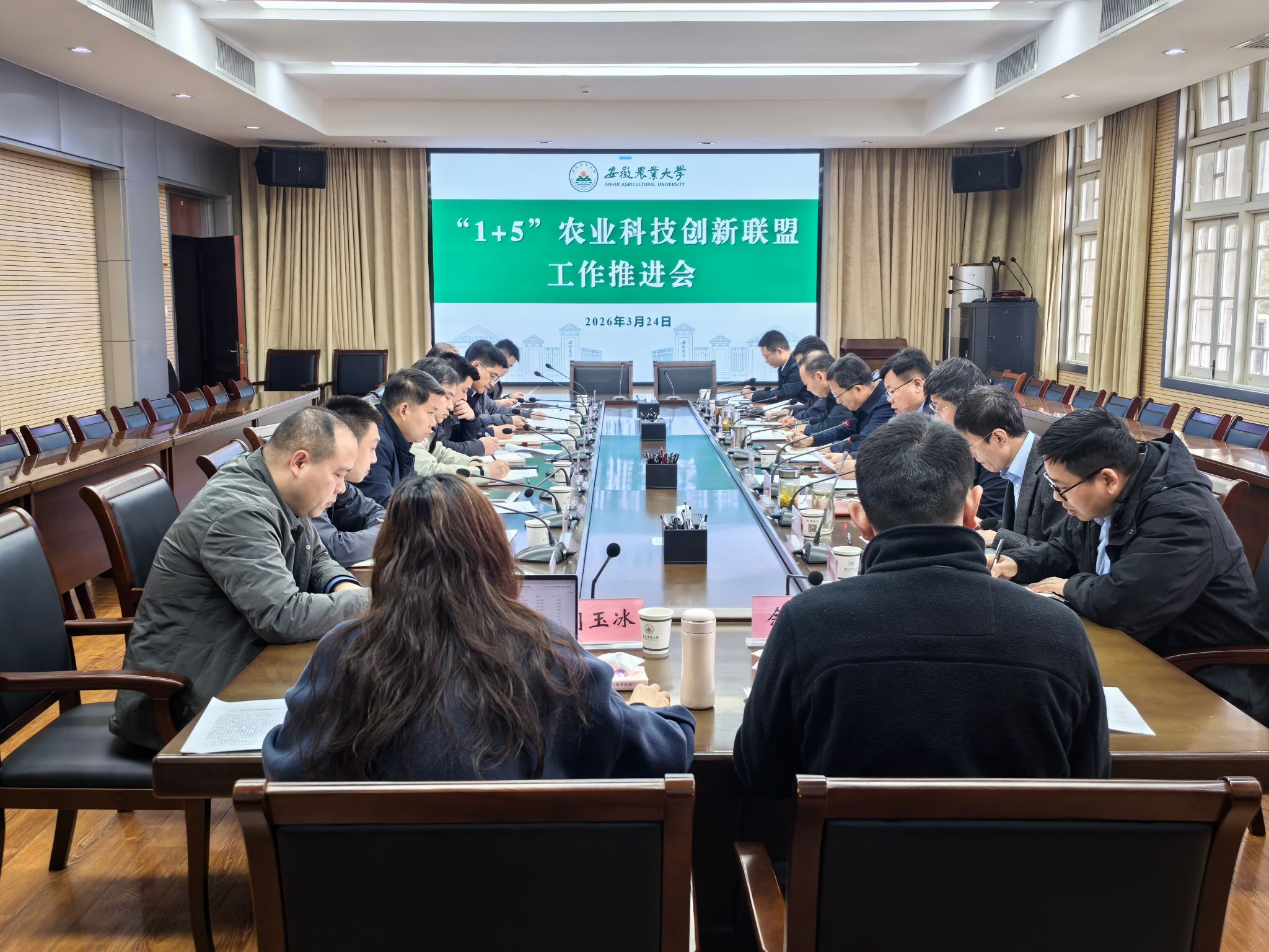 本网讯 3月24日上午,“1+5”农业科技创新联盟工作推进会在安徽农业大学召开。安徽农业大学校党委书记张庆亮、学术副校长吴文革出席会议,会议由党委常委、副校长江海洋主持。会议通报了“1+5”农业科技创新联盟2026年工作要点,围绕深化协同合作、联合科技攻关、成果高效转化、强化人才引育、助力农业“走出去”、优化创新生态等六大重点任务进行了讨论交流。会议指出,“1+5”农业科技创新联盟要锚定安徽打造“三地一区”的战略定位,...