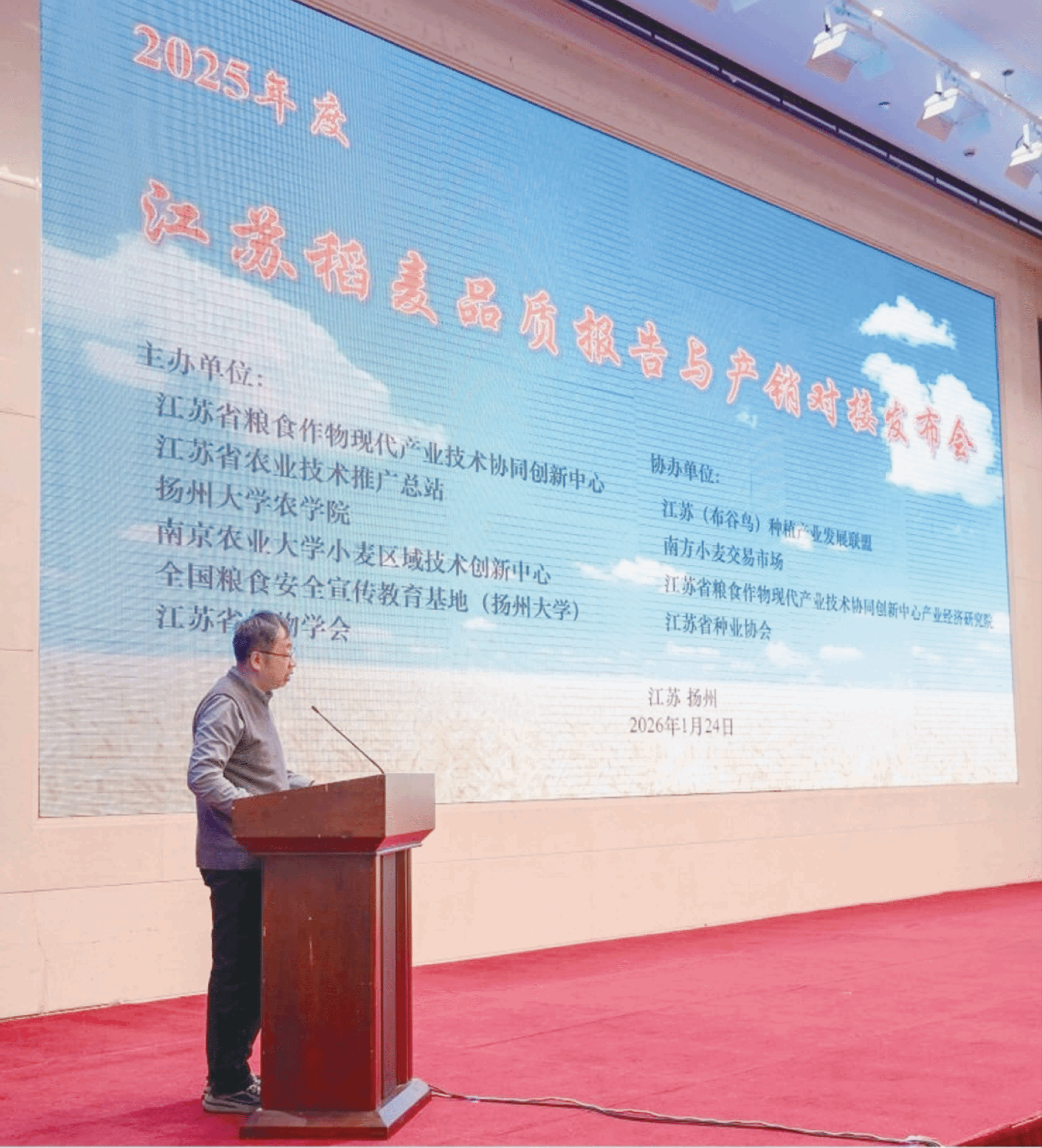 本网讯 近日,“1+5”农业科技创新联盟副秘书长姜东教授、安徽省江淮粮仓研究院副院长武立权教授、安徽省农业技术推广总站、安徽农业大学农学院相关领域研究人员赴江苏扬州,参加江苏稻麦品质报告与产销对接发布会。会议由江苏省粮食作物现代产业技术协同创新中心、江苏省农技推广总站、扬州大学农学院、南京农业大学等主办,江苏(布谷鸟)种植产业发展联盟、南方小麦交易市场等协办,以“发布品质报告、对接产销需求、共促产业发展”...