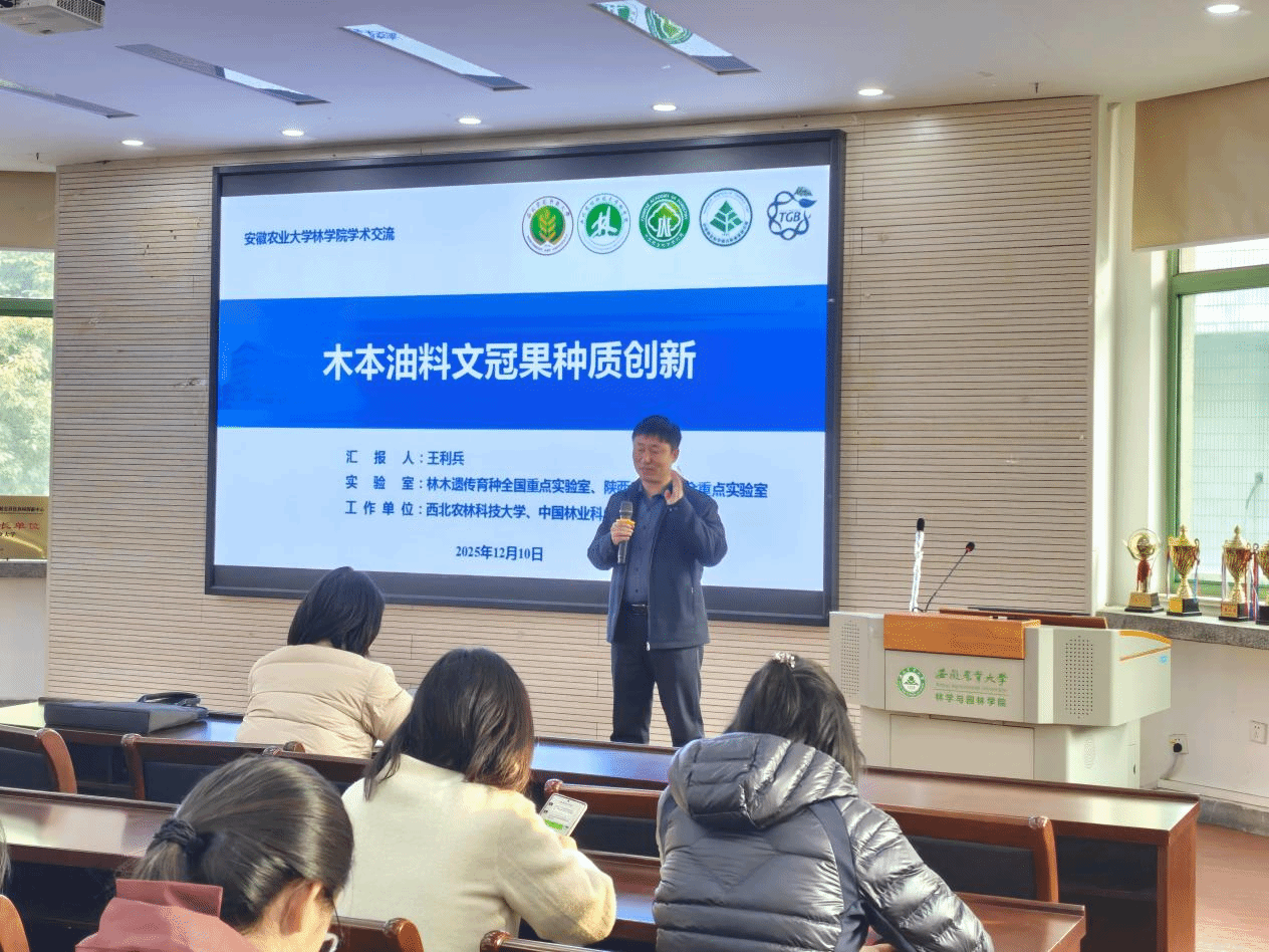 本网讯 为进一步加强校际合作,凝聚学科发展合力,推动林学领域高质量发展,安徽农业大学林学与园林学院邀请西北农林科技大学林学院院长王利兵研究员开展学术交流。王利兵以“木本油料文冠果种质创新”为主题做学术报告。他重点分享了团队在文冠果种质资源收集、评价、选育及分子育种等方面的最新研究成果,并与在场师生就文冠果种植技术推广、产业链延伸等问题展开互动交流。报告内容丰富、见解深刻,为学院相关学科发展提供了重要借鉴与方向指引。...