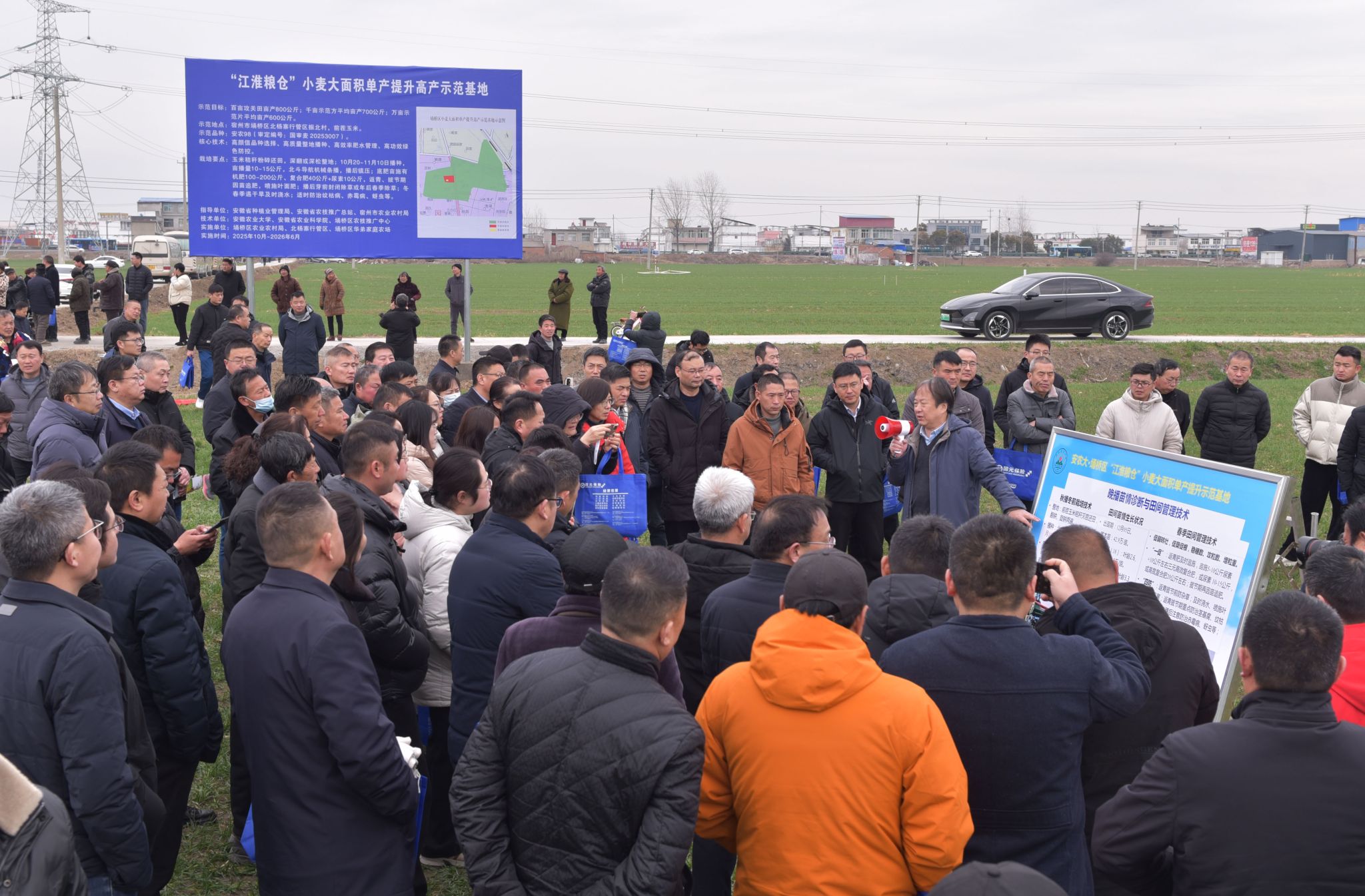 本网讯 2月9日,“1+5”农业科技创新联盟在宿州市埇桥区举办“返青促苗·科技先行”小麦春季田间管理技术指导与观摩活动。省政协副主席马传喜,中国农业大学王志敏教授,西北农林科技大学王东教授,南京农业大学姜东教授,南京农业大学华修德教授,宿州市副市长刘博夫,安徽农业大学党委常委、副校长江海洋,省农科院副院长李成,省农技推广总站站长黄超参加活动。在埇桥区“江淮粮仓”小麦大面积单产提升高产示范基地观摩现场,以示范品种“...