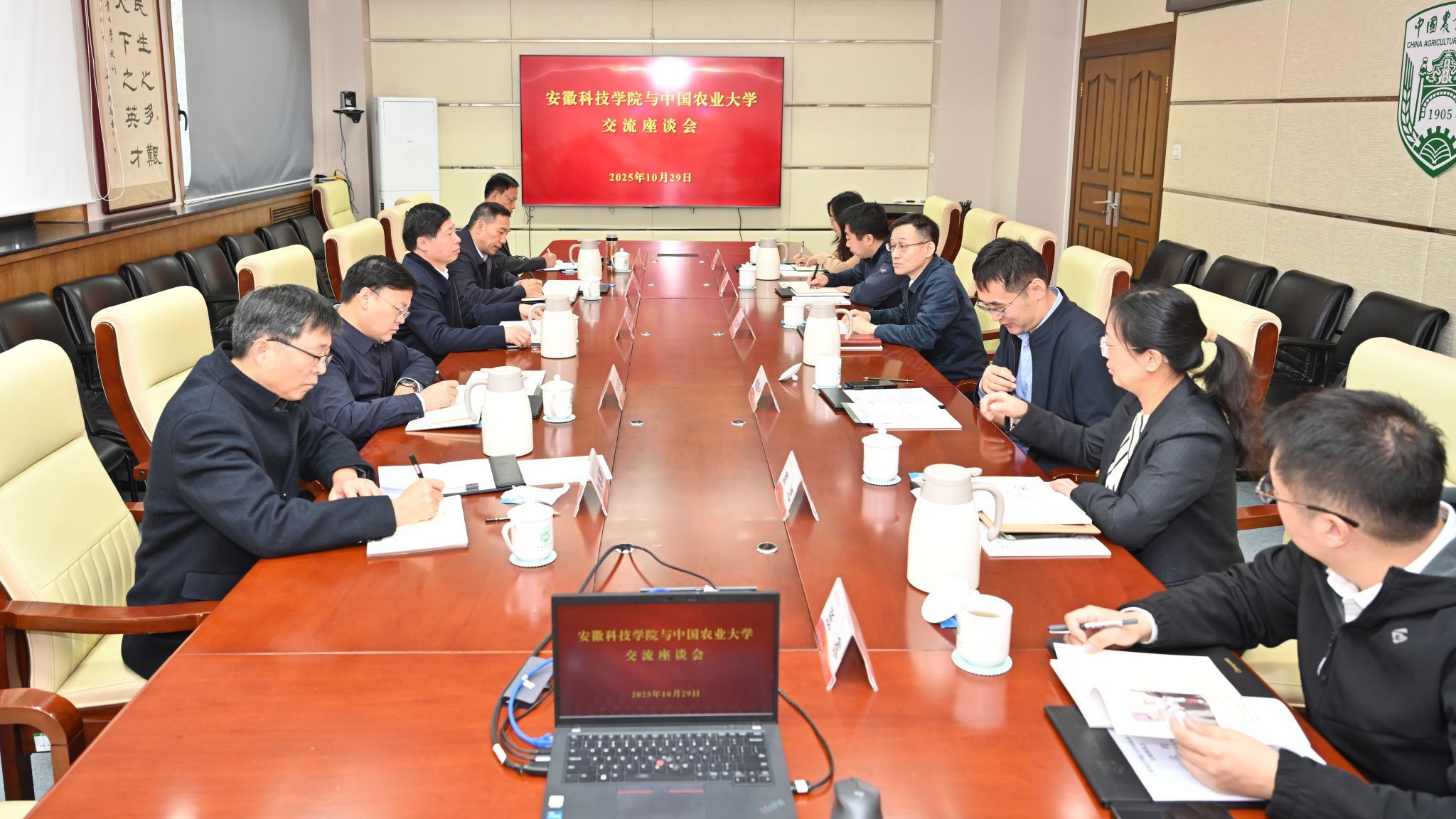 本网讯 10月29日,安徽科技学院党委书记时伟率队赴中国农业大学对接落实“1+5”农业科技创新联盟建设有关工作。中国农业大学党委书记钟登华院士亲切会见时伟一行,双方就推进联盟建设有关任务与两校合作事宜举行座谈。中国农业大学副校长田见晖主持座谈会。时伟介绍了安徽科技学院办学历史沿革、目前发展态势,特别是近年来改革、建设与发展情况。他表示,安徽科技学院始终坚守“三农”初心,打造农科特色,在服务地方农业产业发展、...