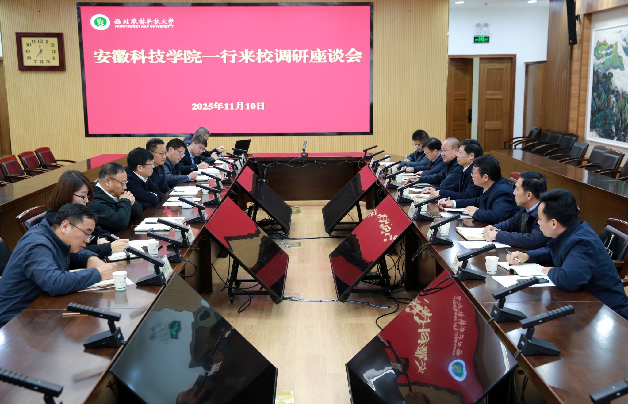 本网讯 为深入贯彻落实党中央关于加快建设农业强国的战略部署,深化安徽省“1+5”农业科技创新联盟框架下的校际合作,11月10日,安徽科技学院校党委书记时伟、院长李升和、学术副院长王东一行,专程赴联盟成员单位西北农林科技大学考察交流。西北农林科技大学校长吴普特、副校长孙马热情接待了考察团,并举行专题座谈,共商合作大计。时伟对西北农林科技大学长期以来的支持表示感谢。他指出,两校同为我国农业高等教育的重要力量,血脉相连、...