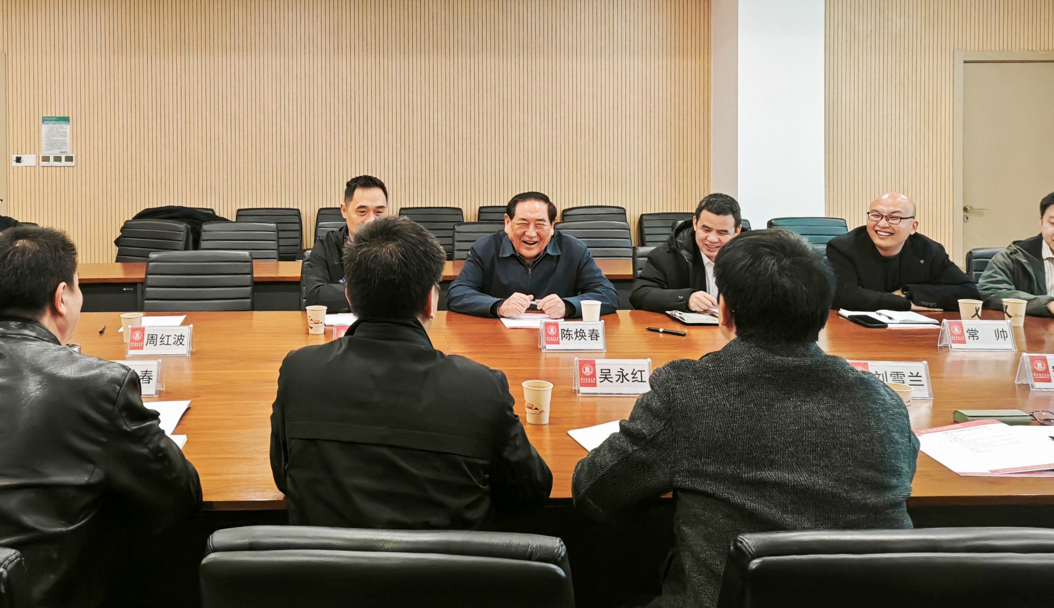 本网讯 11月22日,安徽农业大学动物医学院党政班子一行赴华中农业大学调研,并与中国工程院院士、华中农业大学陈焕春教授座谈交流。陈焕春详细介绍了“华农—扬翔:产科教深度融合发展模式、华农—科前‘三创’产学研一体化模式”成功经验,强调畜牧兽医学科肩负保障国家畜禽种业安全与重大疫病防控的核心使命,要大力创新智慧养殖技术、推进抗病育种等前沿技术。他希望华中农大和安徽农大兽医学科建设要立足区域发展需要,科学谋划“...