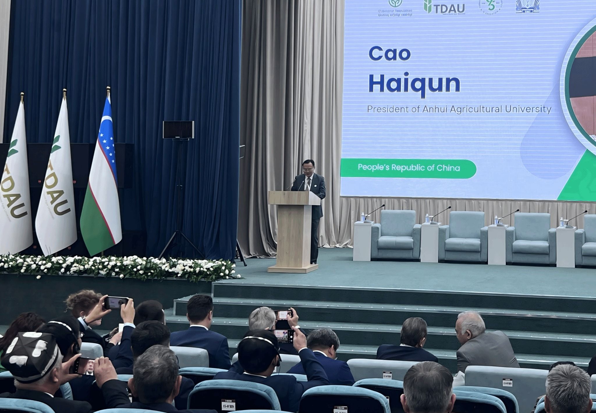 本网讯 11月12日至16日,联盟秘书长操海群率团赴乌兹别克斯坦、塔吉克斯坦,走访两国农业主管部门、科研院所及部分农业高校,积极对接服务国家“一带一路”倡议和安微农业“走出去”战略。在乌兹别克斯坦,代表团受邀出席塔什干国立农业大学95周年校庆大会暨“全球气候变化背景下的农业可持续发展与粮食安全保障”国际研讨会,操海群在会上致辞。会后,代表团与塔什干国立农业大学校长及管理层座谈,围绕师生互访、学术交流、科研合作等达成系列共识。...