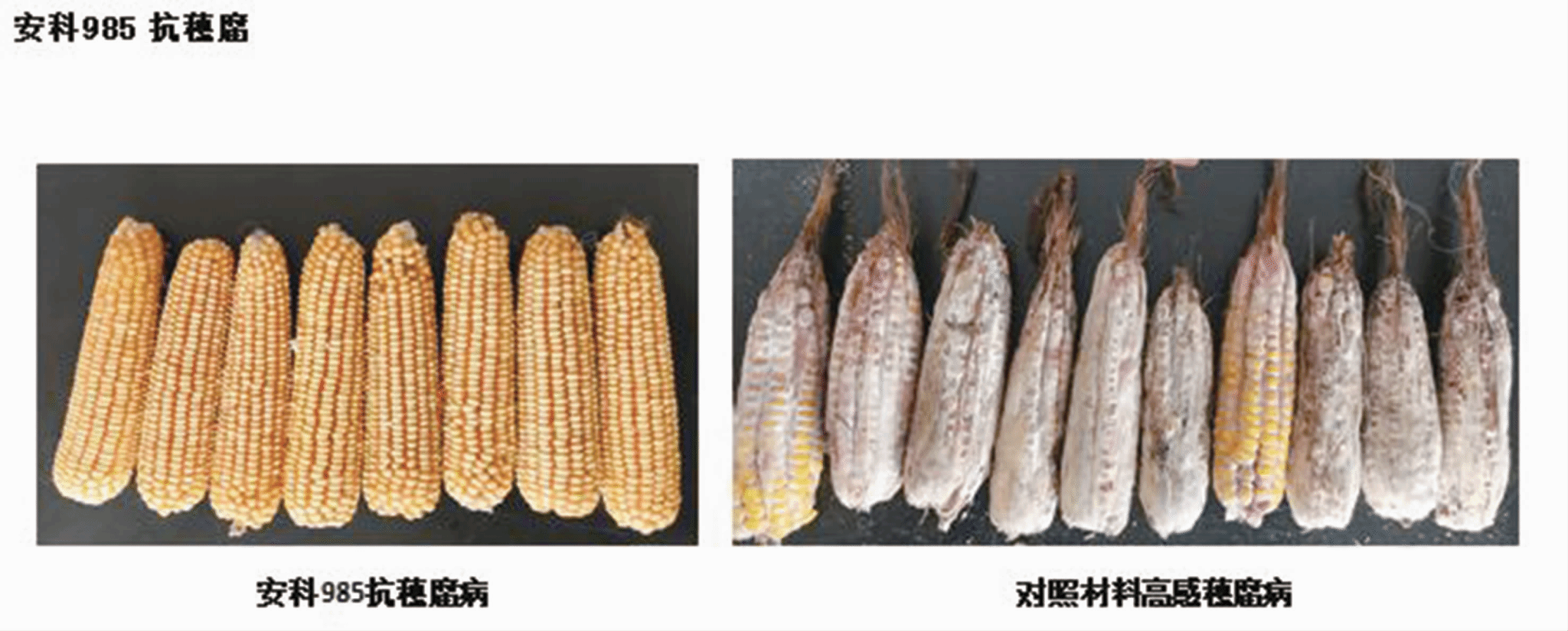 安科985是由安徽科技学院选育的高产稳产抗病玉米新品种,2023年通过国家农作物品种审定委员会审定(国审玉20233281),并实现成果转化应用。该品种农艺性状:株高260cm左右,穗位90cm左右,果穗锥型,穗长约20-25cm,穗行数16-18行,穗轴白色,籽粒金黄色,出籽率88-90%,适宜密度4500-5500株。抗病抗倒:抗南方锈病、穗腐病,中抗小斑病、茎腐病。综合抗病性强,根系发达茎秆坚韧,抗倒性好。稳产性好:2018-2020年在安徽、山东进行生态鉴定试验,3年平均产量比对照郑单958增产12.6%;2019年参加安徽省联合体区域试验,2020年安徽省联合体区生同步试验,2021年国家黄淮海区生同步试验。