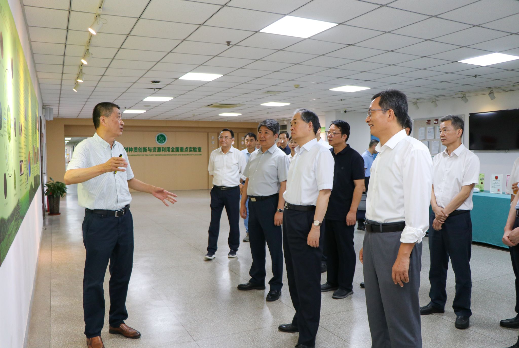 座谈会前,张曙光一行调研了茶树种质创新与资源利用全国重点实验室、作物抗逆育种与减灾国家地方联合工程实验室,以及安徽省江淮粮仓研究院与联盟秘书处办公场地,听取了学校关于科技创新平台建设、联盟实体化运作推进情况等汇报。